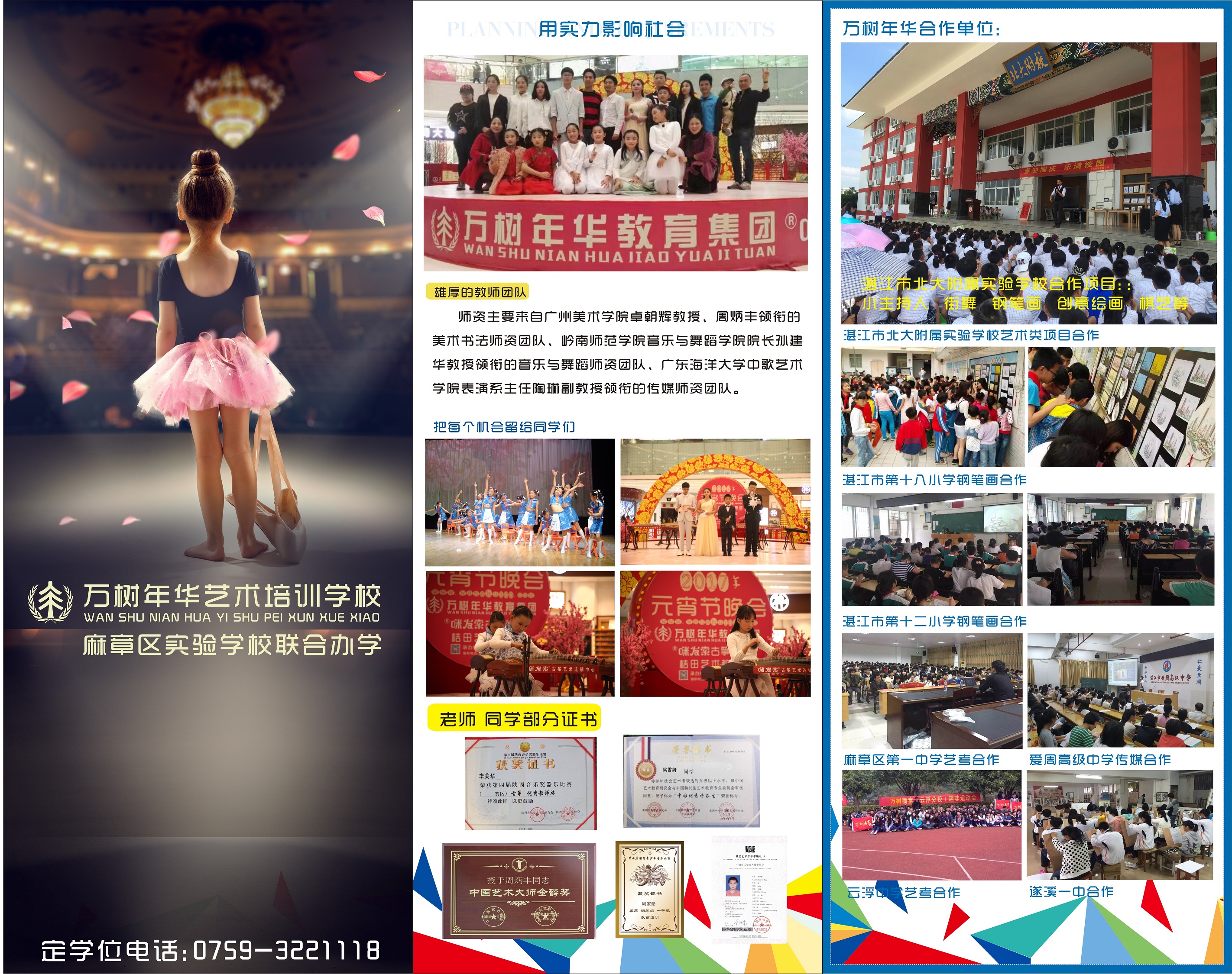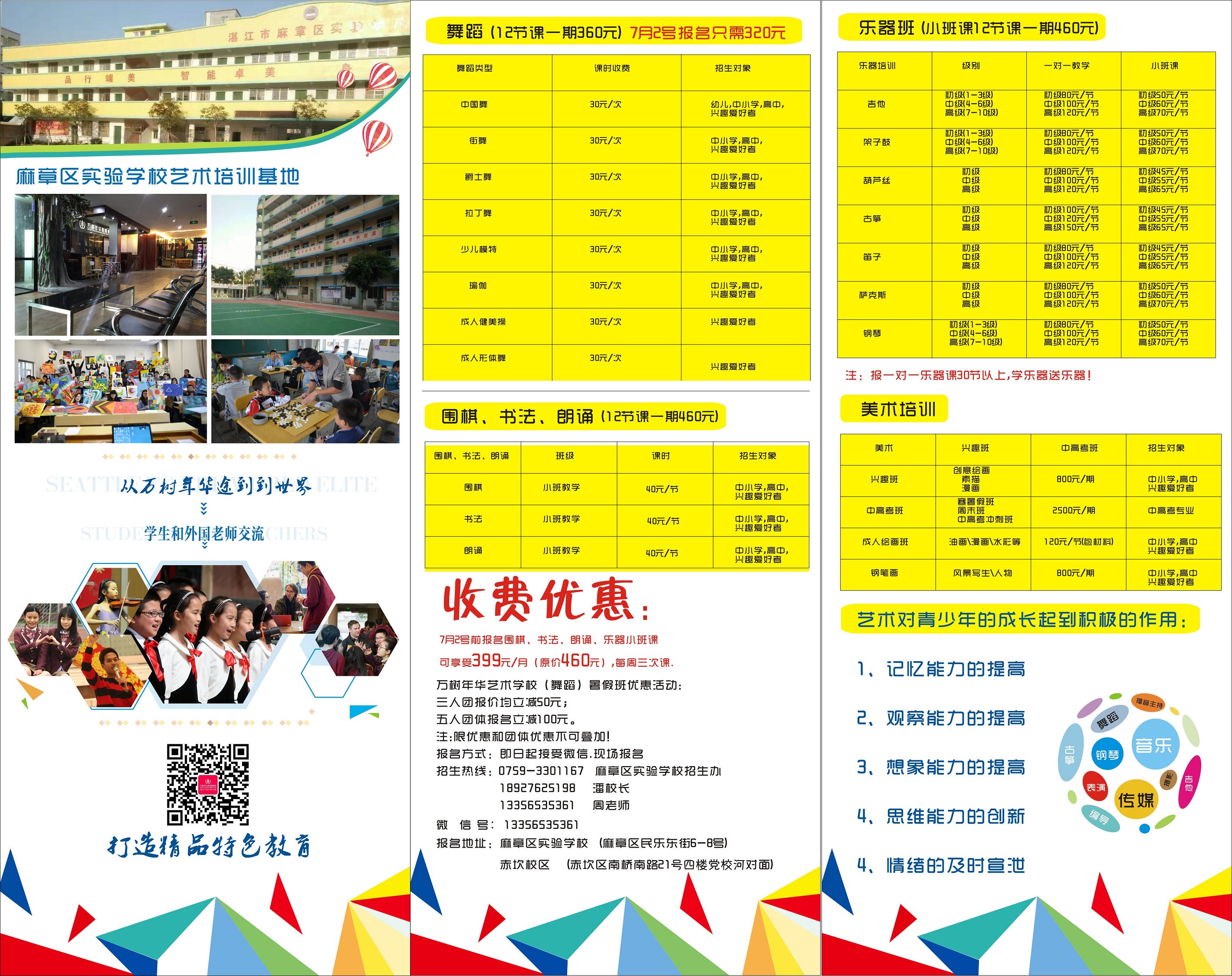 湛江市麻章区实验学校与万树年华艺术培训学校在2017年暑假开始联合举办艺术特色班。